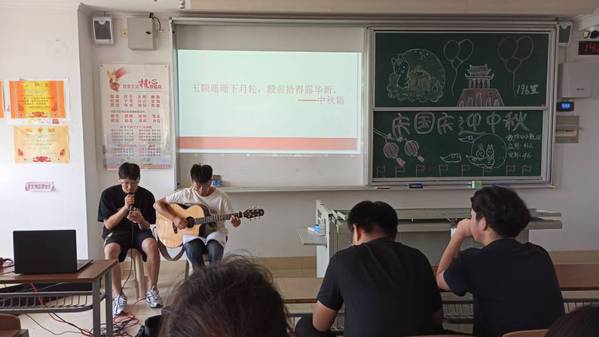 团日开始前,各班组织歌唱《歌颂祖国》,随后各班有序展开团日活动。各班以中秋国庆为出发点,介绍了节日的由来和意义,并讨论了每个地区不同的习俗,让同学们对节日都有了更深的了解。通过节日,很多同学从自身联想到家庭,从小家联想到大家,又从团圆联想到分离,想到了亲友的团圆与老友的重逢。更想到了那些为了工作而无法回家的人们,使同学们进行了深度思考,深化了本次团日的主题。本次团日,各班都准备了各种各样的活动。有的班级开展了“国庆应不应该离校”的辩论、有的班级击鼓传花,以中秋国庆为中心送祝福、有的班级准备了歌曲、诗朗诵、有的班级猜灯谜、你画我猜等等……各班同学在团支书的组织下踊跃表达,积极参与,营造了良好的团日氛围。