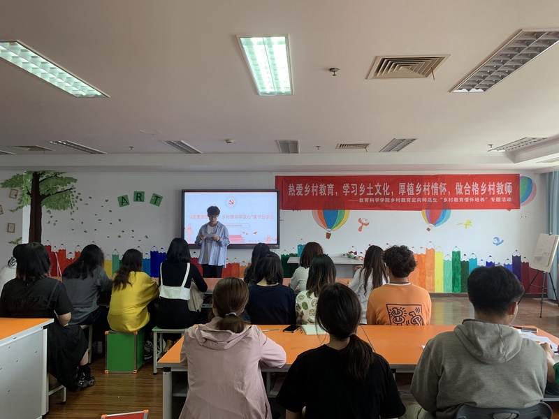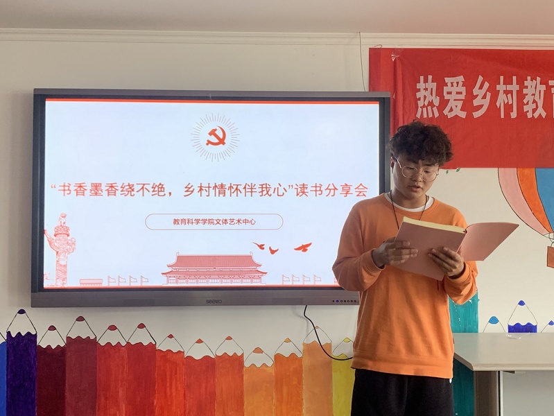 2021521日中午,教育科学学院文体艺术中心举办了读书分享会。此次活动是为了弘扬乡村情怀与奉献精神,促进学生培养扎根乡村、争做好老师的思想,同时引导学生在阅读中发现思考,在阅读中学习反思,与书为友,不断进步,激发读书乐趣,提升思想觉悟。