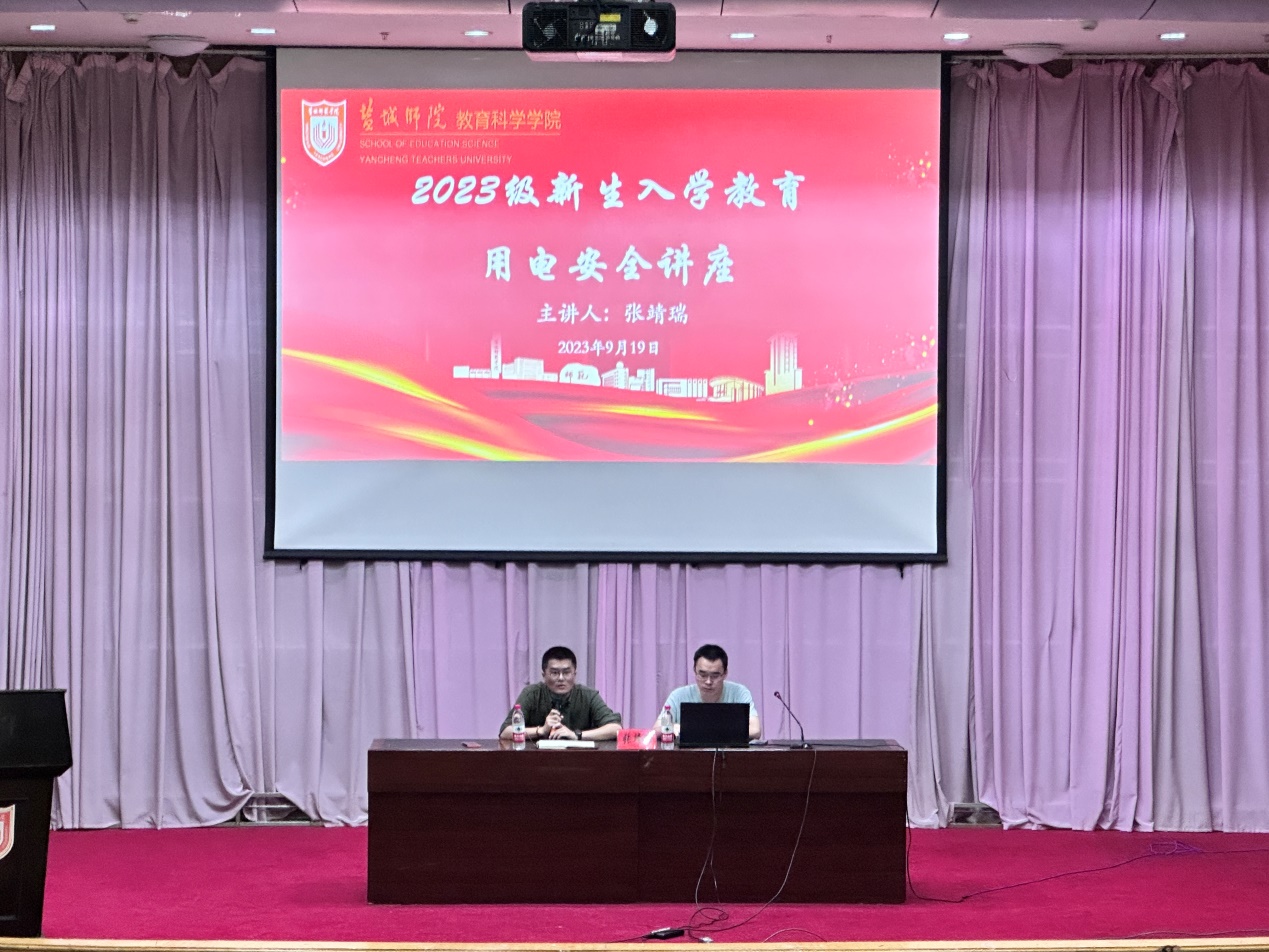 9月19日晚上,由教育科学学院、国网江苏省电力有限公司盐城供电分公司亭湖区供电服务中心共同主办的“安全用电 你我同行” 安全知识普及讲座在通榆校区国际会议中心举行,2023级全体新生和辅导员老师参加了此次活动。
