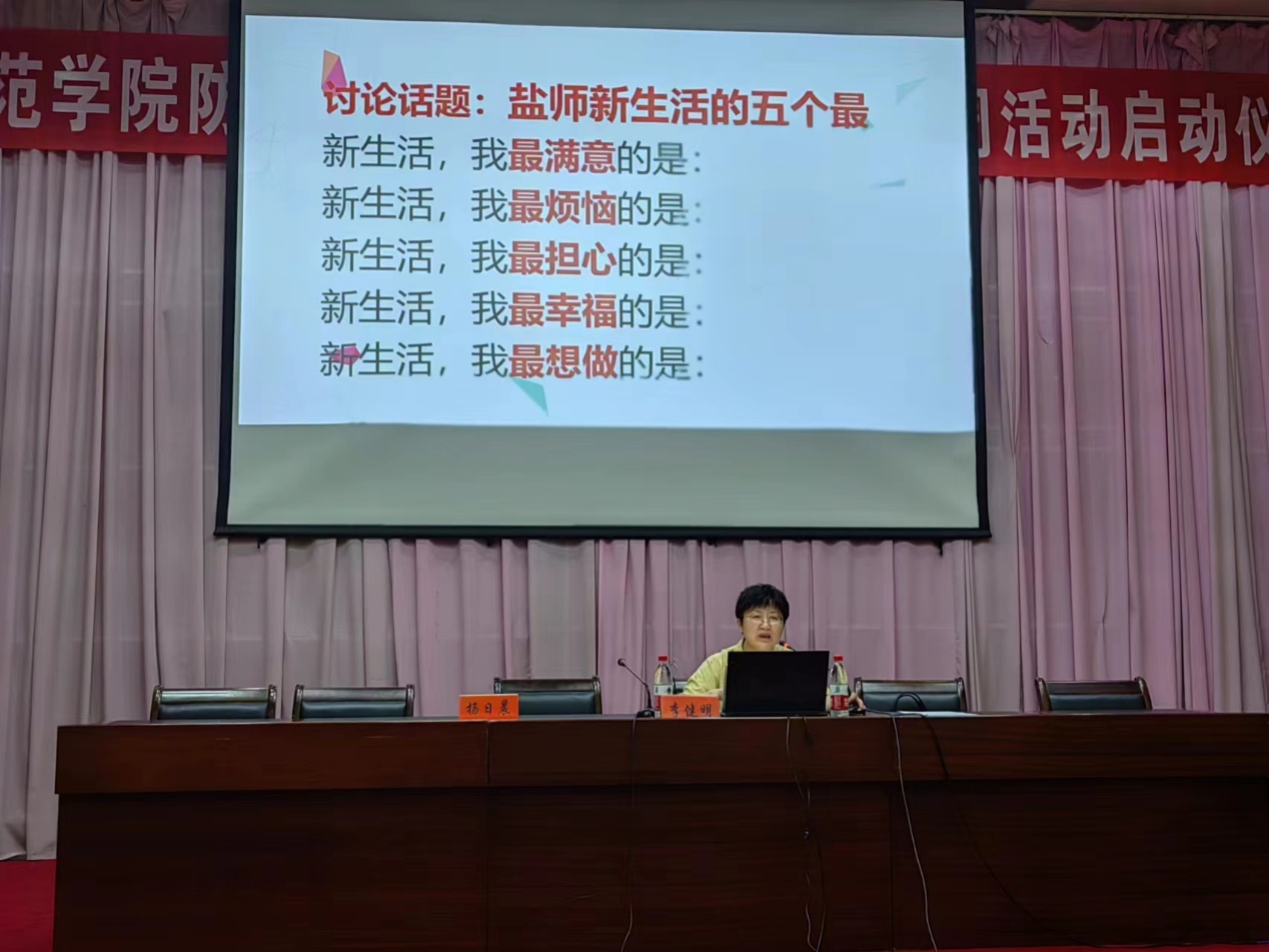 讲座开始,李部长通过在线互动平台向新生发起现场讨论:“盐师新生活的五个最——最满意、最烦恼、最担心、最幸福、最想做”,学生踊跃参与,现场气氛热情高涨。