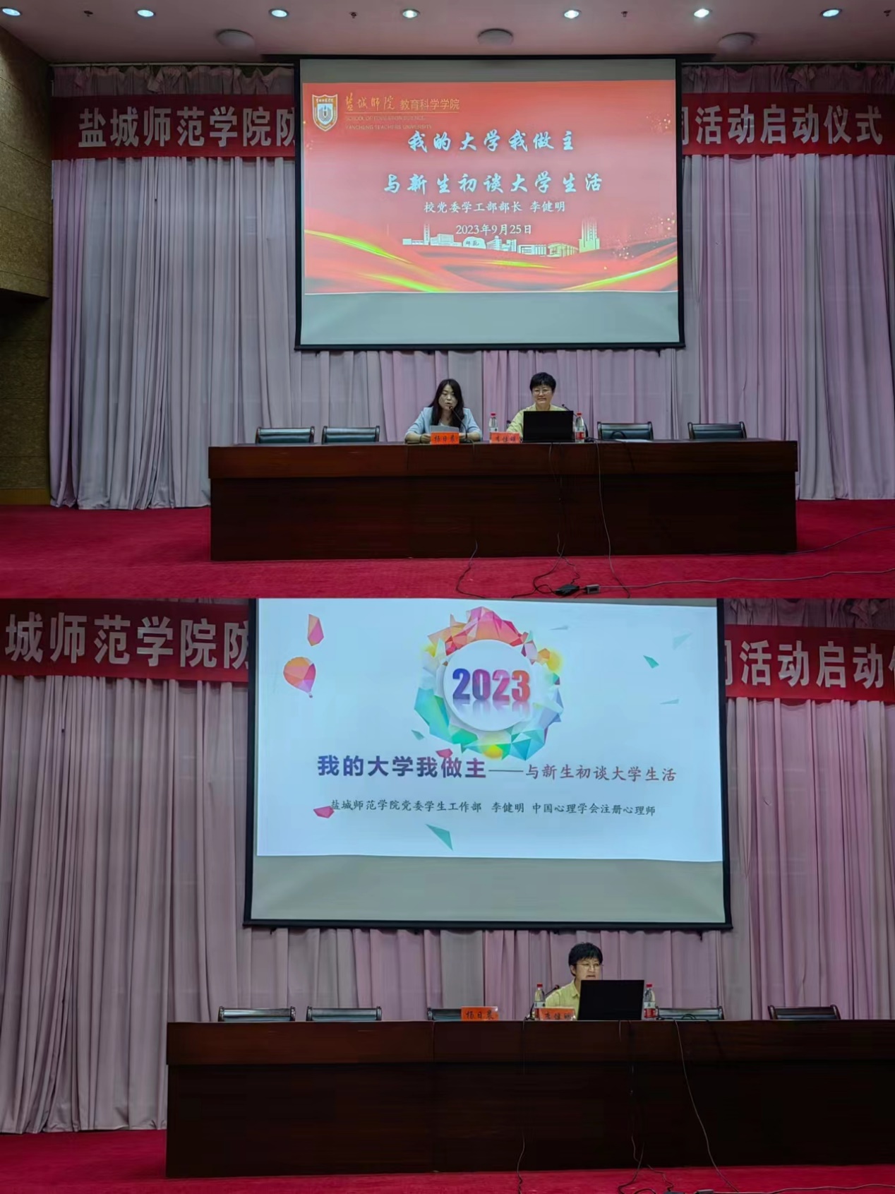 为帮助新生更好适应大学生活,顺利开启大学“心”旅程,教育科学学院于9月25日晚在国际会议中心举办“我的大学我做主——与新生初谈大学生活”新生入学教育专题讲座。本次讲座邀请校党委学生工作部部长、学生处处长李健明主讲,学院党委书记杨日晨主持,全体辅导员以及2023级全体新生参加讲座。