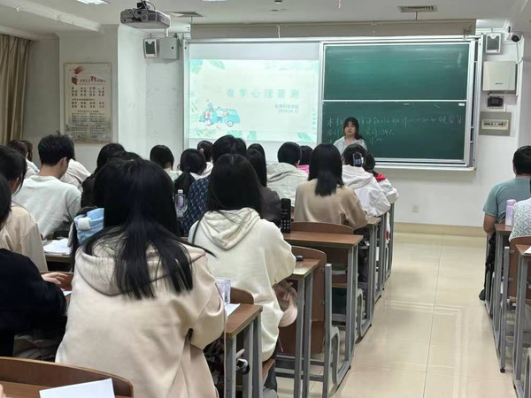 心理普测作为心理健康常规性工作,是心理健康教育工作不可或缺的重要环节。为确保测试结果的真实性与有效性,学院心理辅导员张钰召开心理委员工作会议,传达有关心理普测相关注意事项及要求。随后,各班辅导员、心理委员结合班级情况指导施测,提醒学生认真对待,如实作答。