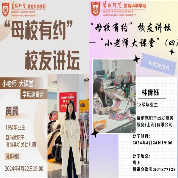 学院邀请了园长、校长走进“杏坛心语”,举办了“园长有话说”、“校长有话说”系列活动,帮助学生夯实专业思想,树立职业目标;邀请多位校友走进“母校有约”校友讲坛开展“小老师大课堂”系列活动,与学生分享求职历程和成长故事,帮助学生认清就业形势,合理规划职业生涯;邀请多名教授、博士走进“教育文化节”担任读书会领读教师,带领学生阅读教育经典,涵养师德温润师风。