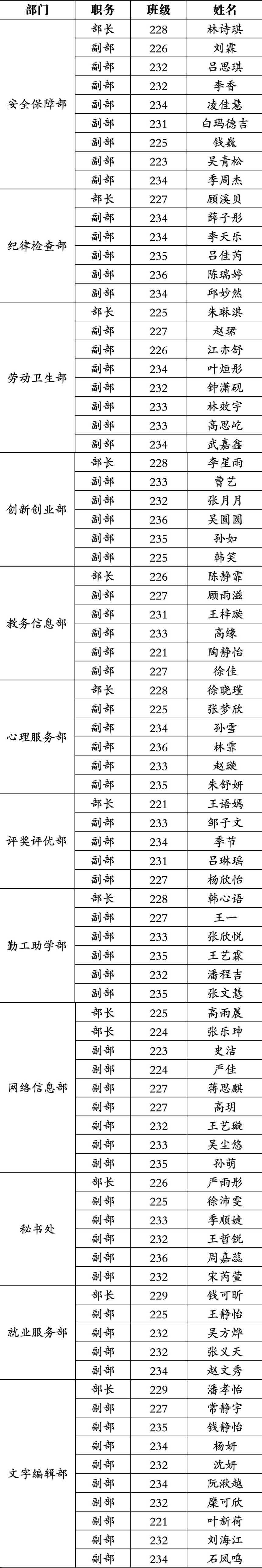 经个人报名、资格审查、面试等程序,拟聘用以下82名同学为自律会成员,现名单公示如下: