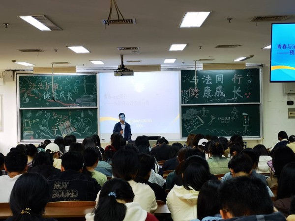 专家宣讲强认知。学院邀请检察院法律专家开展“青春与法同行—预防身边的违法犯罪”主题宣讲。检察官从网络的“陷阱”、两卡的“利诱”、“枪手”的诱惑、校园的“老大”等方面展开宣讲,向学生介绍了传销、赌博、间谍、诈骗、欺凌等常见的校园违法行为,并结合典型案例向学生普及相关法律条文。