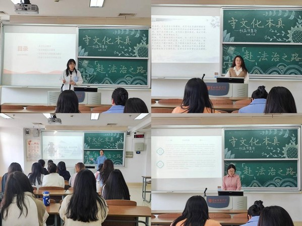 文化分享弘精神。学院举办中华优秀传统法治文化分享会,学生现场讲述法治历史故事,挖掘优秀传统法律文化的深刻意义,探讨《唐律疏议》“德礼为政教之本,刑罚为政教之用”的德主刑辅、明德慎罚的思想。通过现场分享,学生们充分领略了中国古代德法共治所蕴含的深厚智慧。