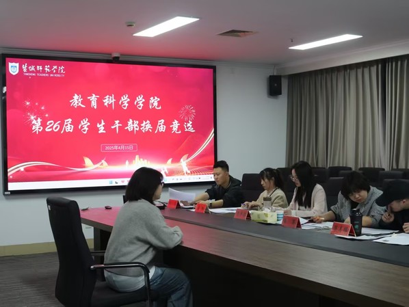 为促进学生会组织建设的更新换代,培养和壮大高素质后备力量,充分发挥学生自我管理、自我服务、自我教育的主体作用,教育科学学院学生会、团委、自律会于2025年4月15日组织开展第26届学生会干部换届面试,出席人员有教育科学学院党委副书记海英、学工办主任陈志鹏在内的全体辅导员及25届学生会主席和各部门部长。