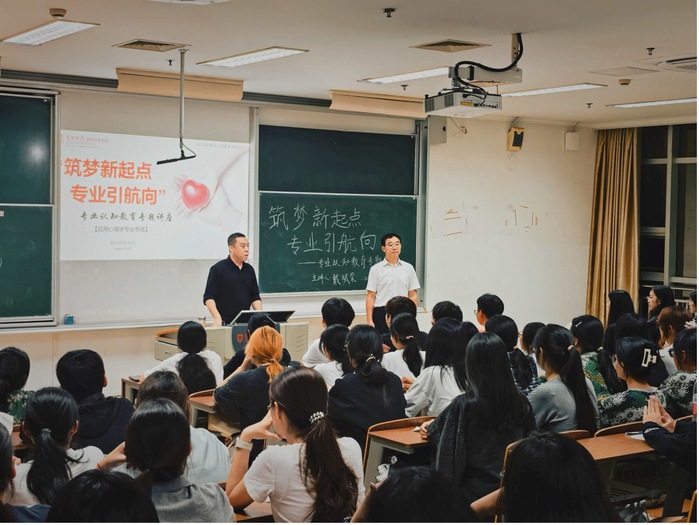 为帮助2025级新生全面认知专业内涵、明确学业发展方向,9月28日至29日,教育科学学院聚焦新生专业认知需求,精心举办 “筑梦新起点 专业引航向”系列专业认知教育活动。活动特邀心理学专业带头人戴斌荣教授、小学教育系主任张权力主讲,2025级全体新生及学院领导班子成员、各系主任、班主任、辅导员共同参会,为新生搭建起了解专业、规划未来的重要桥梁。