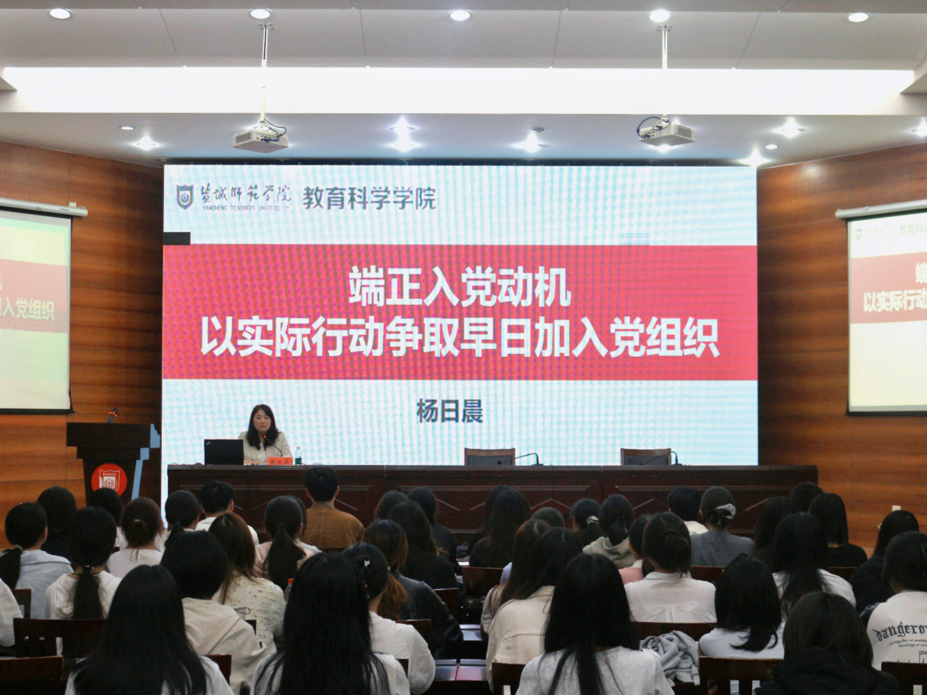 仪式结束后,教育科学学院党委书记杨日晨为学员带来了第一课。她指出,正确的入党动机,根植于为共产主义奋斗终身的坚定信念,体现于全心全意为人民服务的赤子情怀,更落实于学习生活中勇当先锋、作好表率的自觉行动,全体学员要以此次培训为契机,筑牢理想信念、明晰党员标准、端正入党动机,以实际行动争取早日在思想上、组织上加入党组织。