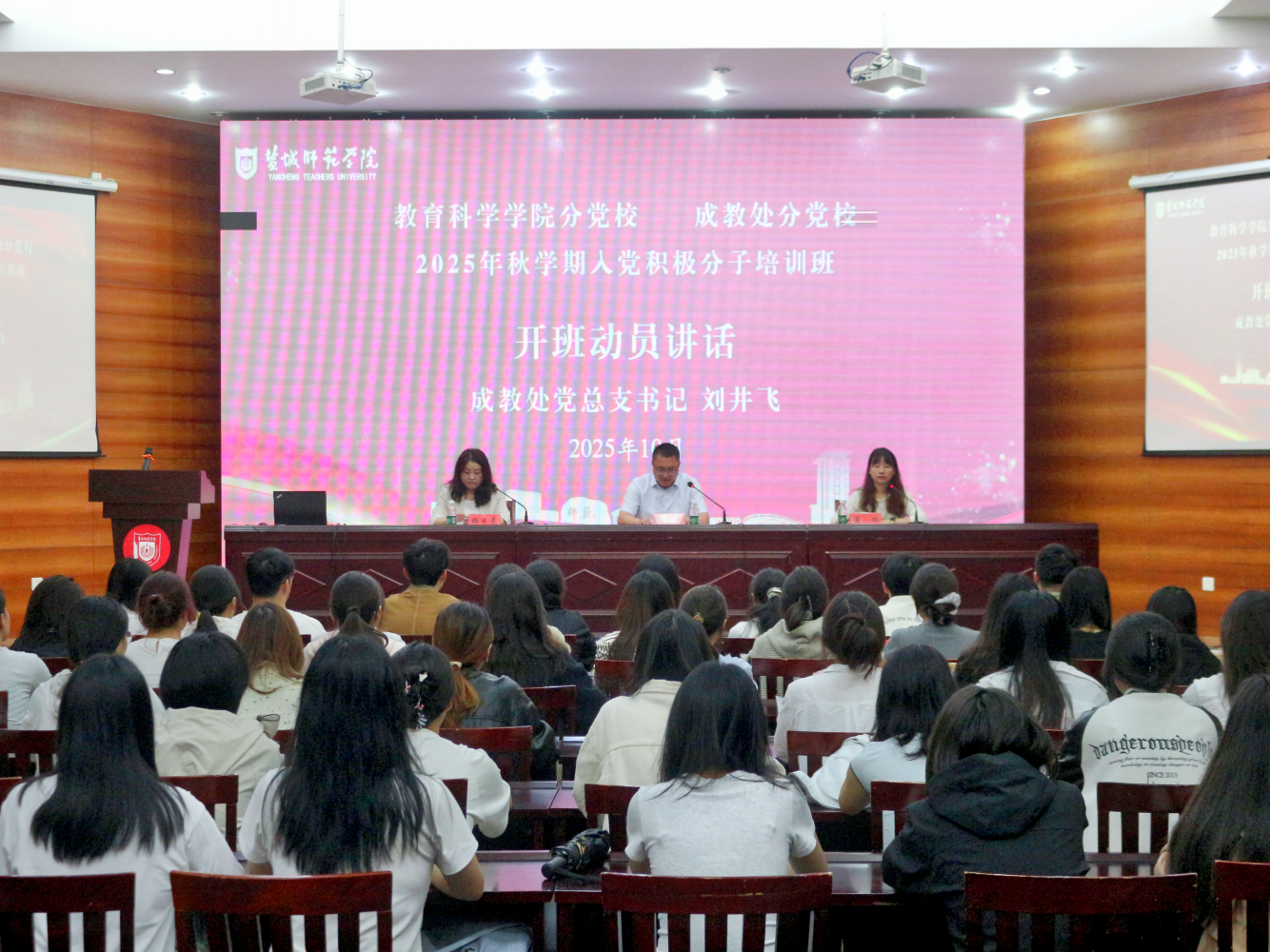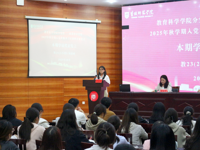 10月15日下午3点,教育科学学院党委在国培报告厅开展了2025年秋学期入党积极分子培训班开班仪式暨首场主题党课活动。成教处党总支书记刘井飞、教育科学学院党委书记杨日晨、学生代表和培训班全体学员参加仪式。开班仪式由教育科学学院组织员潘虹主持。