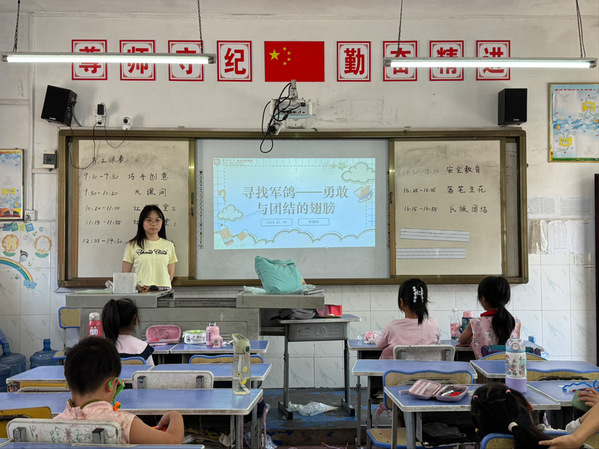 初到高尚镇中心小学,孩子们眼里的好奇像山间的星星一样明亮。有一次讲到新四军臂章时,我刚画出新四军臂章上的文字“N4A”,就有个男孩举手说:“这个好像奥特曼的标志!”这个新奇的比喻让我感到震撼——原来在孩子们的心中,历史是如此的鲜活。