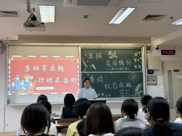 劳动砺志:榜样力量点亮青春底色。教育科学学院以劳动教育赋能新生成长,通过吴仁宝“敢为天下先”的奋斗故事诠释劳动改写命运的真谛,通过袁隆平扎根田野的坚守传递耕耘孕育希望的信念。活动结合师范特色,引导学子体悟“三尺讲台亦是劳动沃土”,激励他们将勤学钻研的作风融入学业生涯。