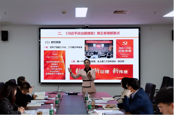 会上,杨日晨领学了《习近平总书记在广东考察时的重要讲话精神》《习近平总书记在党外人士座谈会上的重要讲话精神》等相关文件精神。全国基层理论宣讲先进个人、阜宁县委宣传部副部长王平应邀作题为《建设教育强国,推动民族复兴——学好用好〈习近平谈治国理政〉第五卷》的理论宣讲。学院党委副书记、院长柴江领学了党的二十届四中全会精神。交流研讨环节,中心组成员紧扣专题学习内容,结合学院“十五五”规划谋划工作,深入交流研讨,分享学习心得。