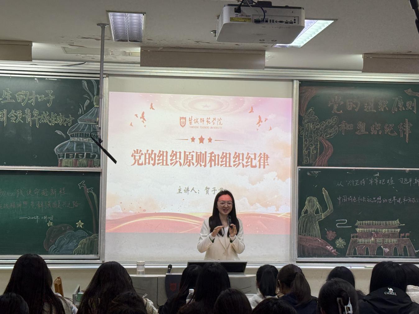 11月12日下午4点,教育科学学院在主楼B211开展了2025年秋学期入党积极分子培训班第六次党课培训。本次党课由教育科学学院团委副书记、学生第三党支部书记贺子君主讲。