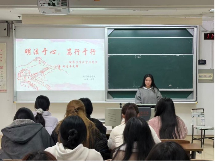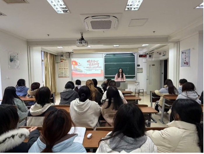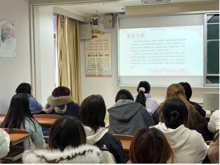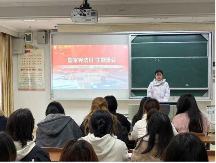 开宪法班会,明法治信仰。学院组织各班级召开“宪法进课堂”主题班会,通过讲解、研讨、案例分析等形式,推动宪法学习融入日常。师生围绕宪法条文与公民权利,结合社会热点展开交流,使抽象法条转化为生动对话,引导同学们夯实知识、树立宪法权威意识。