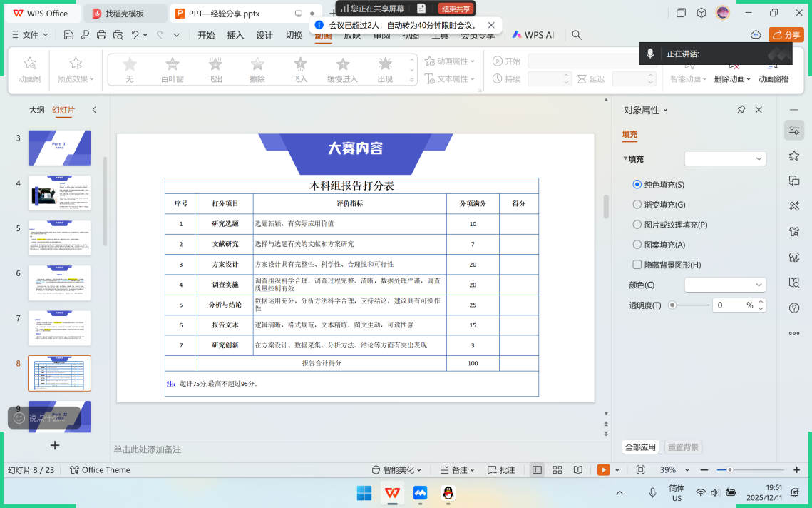 2025年12月11日晚,教育科学学院开展“正大杯”市场调研与分析大赛经验分享会,本次会议聚焦第十六届“正大杯”全国大学生市场调研与分析大赛,由前一届获奖同学陈红君主讲,通过腾讯会议平台为参会者系统拆解大赛全流程、核心备赛环节及实战技巧,旨在帮助参赛团队明晰赛事规则、掌握备赛方法,提升赛事竞争力,会议时长30分钟,全程围绕赛事实操要点展开,内容兼具指导性与实用性。