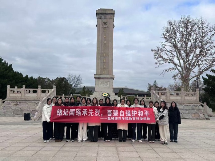 为铭记历史、缅怀先烈、传承红色基因,在国家公祭日来临之际,教育科学学院于12月12日上午组织学生代表前往盐城市烈士陵园,开展“铭记国殇承先烈,吾辈自强护和平”主题祭扫活动。学生们怀着崇敬之心追思先烈英勇事迹,在庄严肃穆的氛围中厚植爱国情怀。