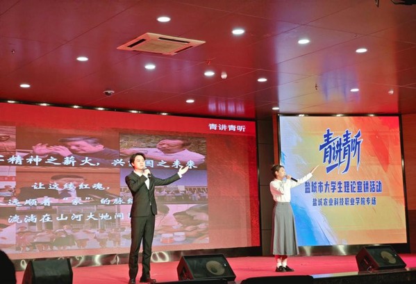 为深化青年理论武装,传承红色基因,12月26日下午,盐城市重点理论宣讲品牌“青讲青听”大学生理论宣讲专场活动在盐城农业科技职业学院学术报告厅举行。我院“盐青先行”理论宣讲团代表学校,与在盐其他高校的优秀宣讲团队同台交流,以青春之声传播党的创新理论。