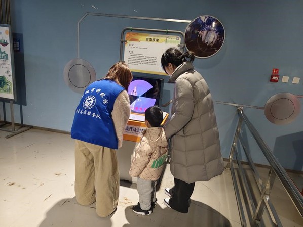服务期间,志愿者们分工明确、各司其职,用行动诠释志愿担当。在科技馆入口及热门展区,他们主动上前,耐心解答市民关于参观路线、展品开放时间的咨询,有序引导观众排队体验互动项目,用热情的态度和周到的服务维护着场馆的良好秩序,成为展厅里一道亮眼的风景线。针对儿童科学乐园和基础科学展区的小观众,志愿者们化身“科普小导师”,用通俗易懂的语言解读科学原理,手把手指导孩子们操作趣味展品,在保障安全体验的同时,巧妙化解孩子们的好奇心与疑问,让科学的种子在欢声笑语中扎根心底。