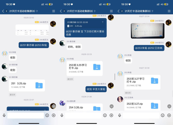 活动实施过程中,学院分管部门与各班级负责人协同联动、履职尽责,构建起高效有序的工作推进机制。工作人员每日精准跟进打卡情况,及时督促学生按时完成打卡任务,同步开展针对性引导与正向激励;各班级负责人认真落实工作要求,规范汇总、按时提交打卡截图,切实保障了活动数据的完整性、规范性与准确性,充分体现了学院严谨务实的工作作风。