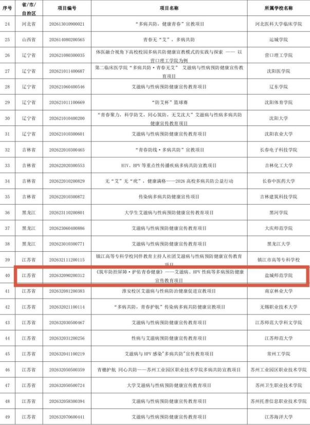 近日,中国性病艾滋病防治协会公布2026年高校传染病多病共防宣教项目拟支持项目名单,我院《筑牢防控屏障·护佑青春健康》健康宣传教育项目成功入选。