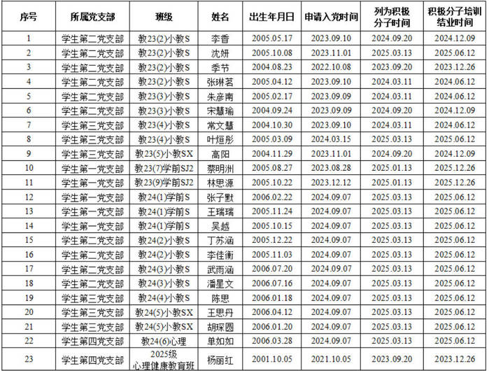 经本人自主申请、组织审核、支部委员会研究、学院党委会审议,拟确定李香等23名同志为2026年春学期党员发展对象。根据发展党员工作有关要求,现将有关情况进行公示。