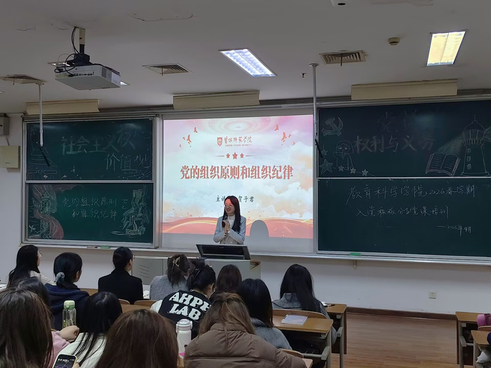 近日,教育科学学院组织开展了2026年春学期入党积极分子培训班第四次党课培训,本次党课由教育科学学院贺子君老师主讲。