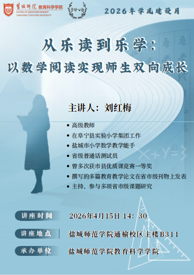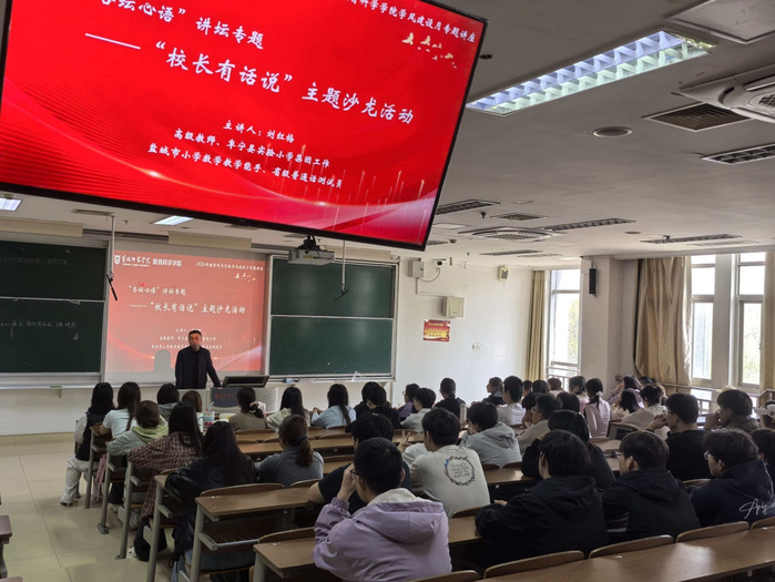 为助力师范生夯实专业根基、明晰成长路径,深化学风建设,4月15日,教育科学学院于通榆校区主楼B311举办“杏坛心语”之校长有话说专题讲座。活动特邀阜宁县实验小学高级教师刘红梅授课,2024级、2025级小学教育(数学)方向全体学生参与,沉浸式汲取一线教育智慧,活动由院长柴江主持。