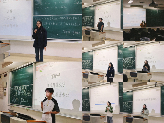 在经验分享环节,学院针对教育学类与心理学专业人才培养特点,邀请8位上岸不同学科的优秀毕业生代表,围绕“考研动机、备考历程、成长收获”三大核心问题进行交流。分享嘉宾覆盖学科语文、学科思政、学科数学、小学教育、心理健康等多个热门考研方向,他们结合自身备考经历,从目标院校选择、复习计划制定、心态调节方法等方面倾囊相授,为不同年级、不同专业的学生梳理出适配自身的发展路径。